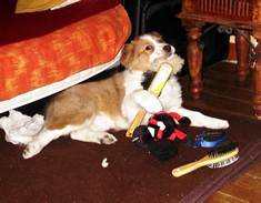 6. Suchen Sie den Welpen und nehmen Sie ihm den schmutzigen Socken aus